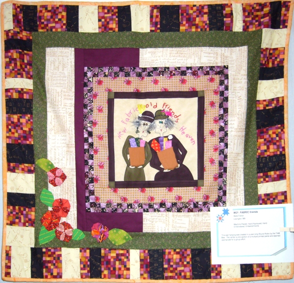 This wall hanging was created in a year-long Round Robin by the TAM Bee. The center is one section of a multiple printed panel and seemed appropriate for a group effort.