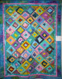 I was inspired by Carol Miller's use of batik at last year's show and by a wonderful packet of scrap batiks which I purchased in Lowell. The pattern is in Stack a New Deck by Karla Alexander