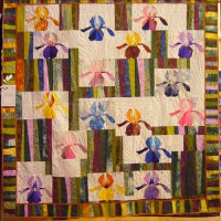 The iris pattern is based on Ruth McDowell's Pieced Flowers book. I took photos of a huge variety of irises to get the various color combinations right.