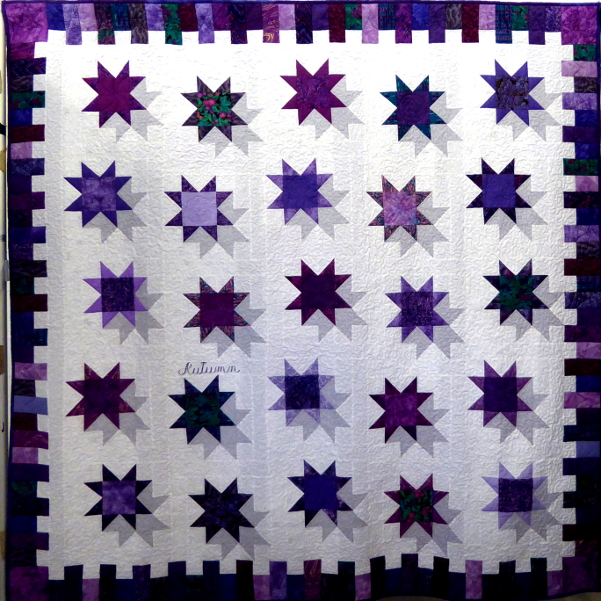 A quilt for my granddaughter Autumn who loves purple. Judging from the size of my purple stash, I've been wanting to make a purple quilt for a long time.