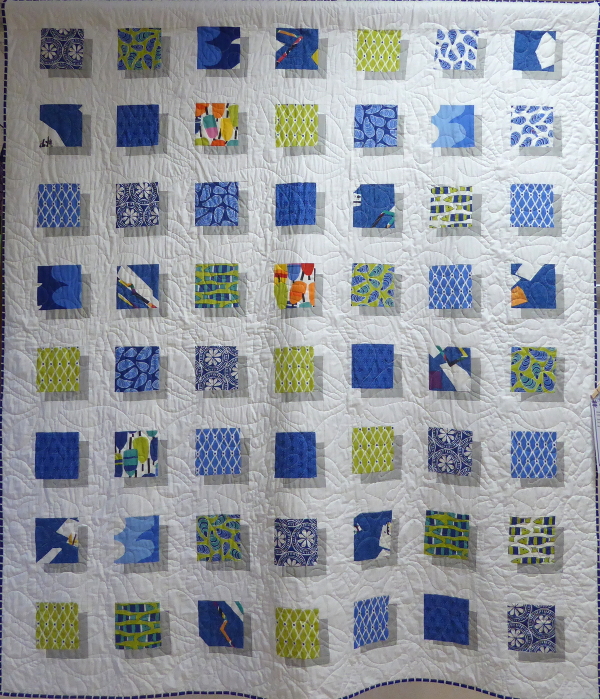 This is an oversized disappearing nine patch with the blocks arranged randomly. I was aiming for a clean, modern look.