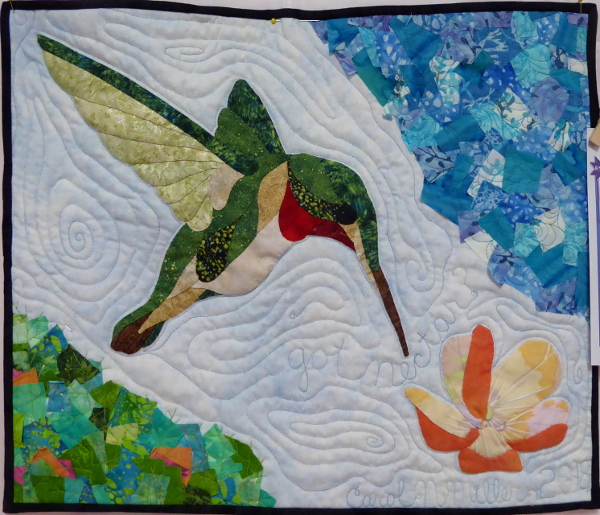 David Taylor hummingbird and flower patterns (adapted). I intensely disliked appliqué until I took his class!