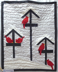 This little quilt celebrates our backyard buddies who congregate at our feeders year round.