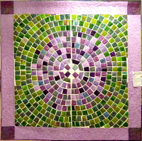 As an Island Batik ambassador, I was asked to make an original quilt from the new Enchanted Forest collection. The fabric inspired me to look for pictures of purple and green for inspiration. The morning glory keep calling me. Electric Quilt 8 was used to make the mosaic. It was quilted entirely on my new Handi Quilter Simply Sixteen all FMQ. More on kathleenmcmusing.com